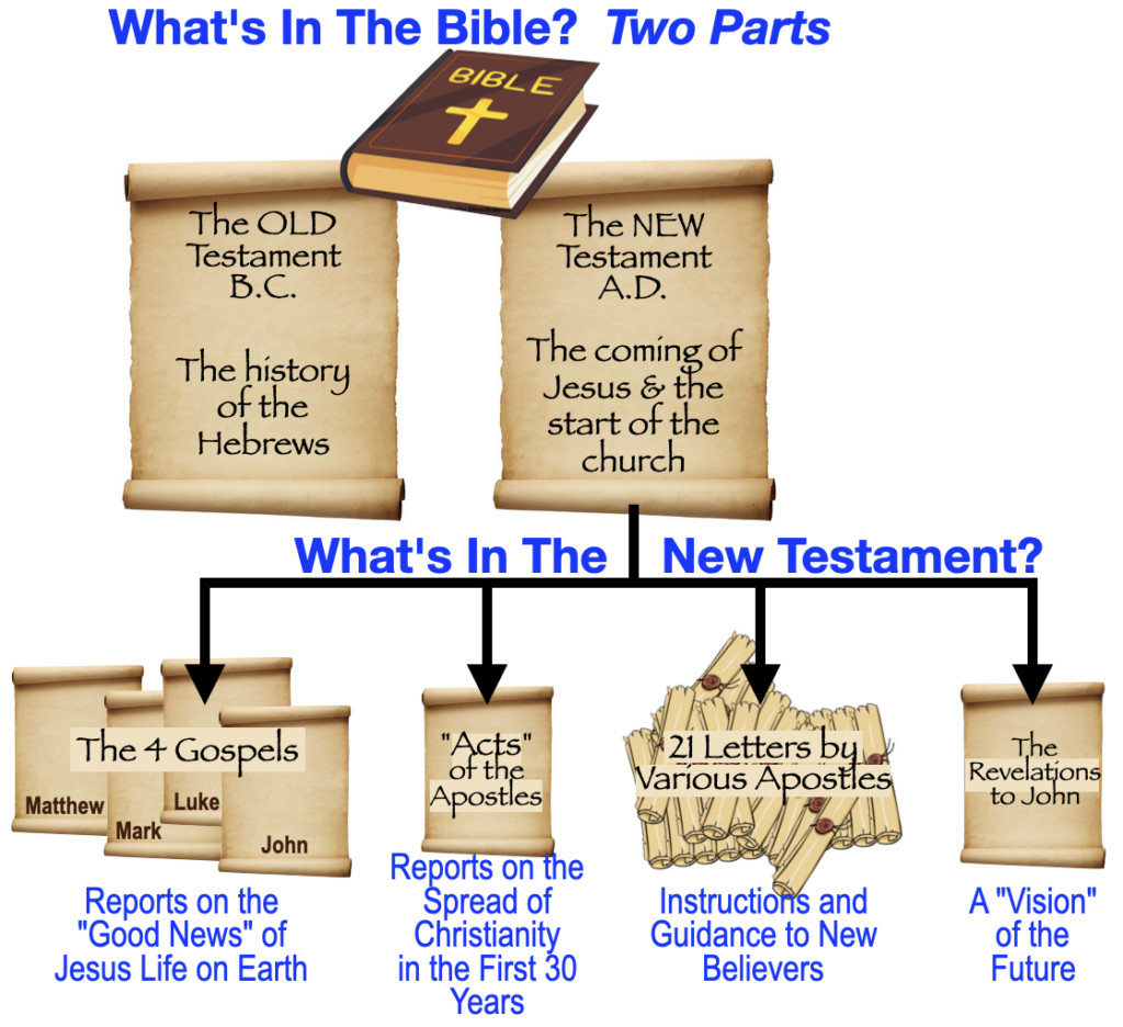 - –> There are 27 “books” in the New Testament. The first four books are also called Gospels.